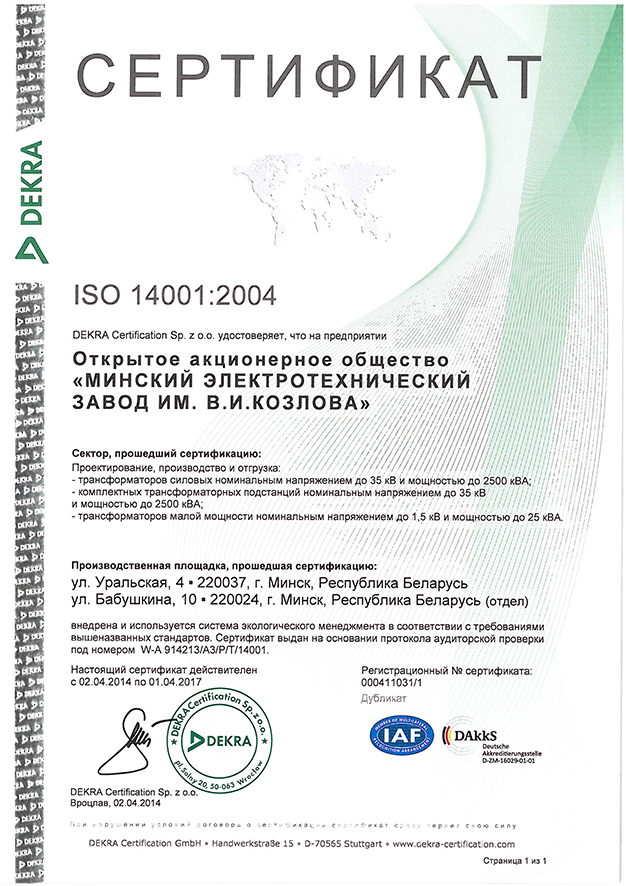 Сертификат ИСО 14001